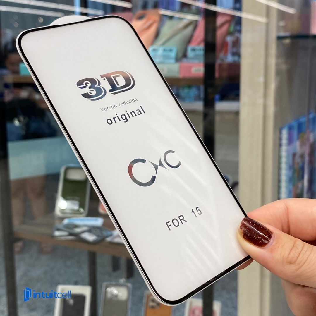 A Película de Vidro 3D para iPhone 15 oferece cobertura total, acompanhando melhor as bordas da tela e garantindo um encaixe perfeito, com visual mais bonito e proteção reforçada para o dia a dia.